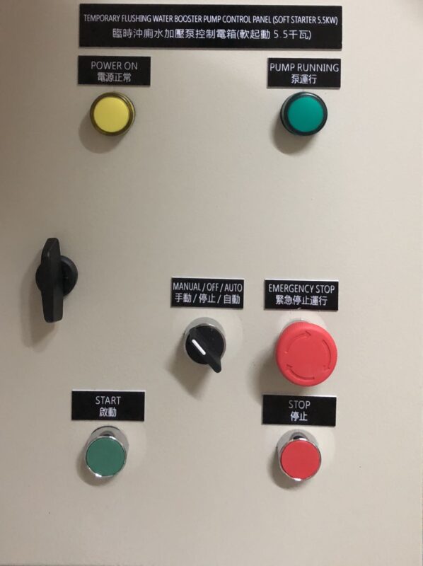 臨時⽔泵控制電箱適合任何類型⽔泵作緊急供⽔⽤途,